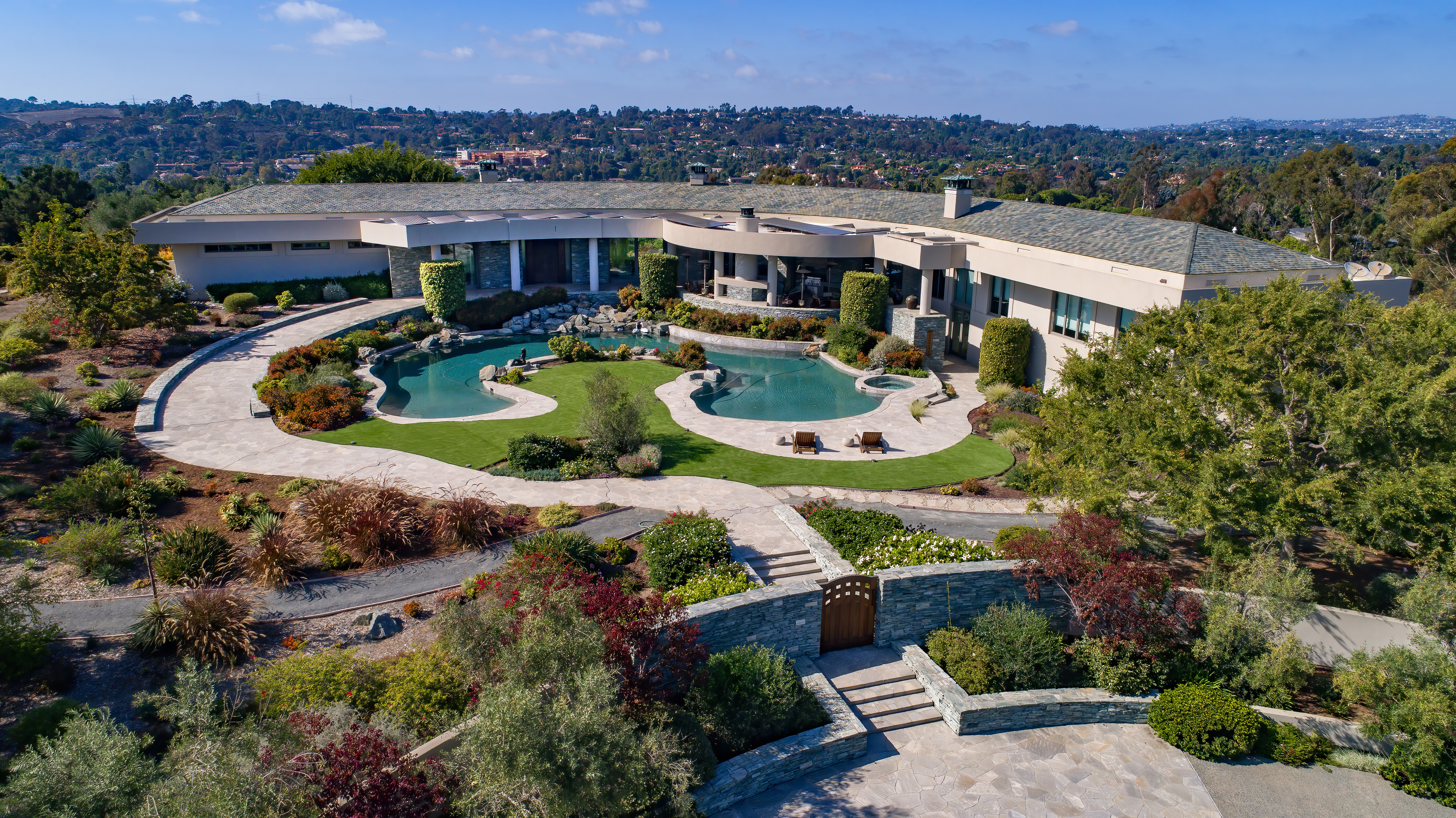 Grand Gestures Set on 2.39 acres of lush, tropical grounds, this grand Mediterranean estate offers sweeping views of the RSF Farms Golf Course and beyond. Located within the highly exclusive, guard-gated community of Spyglass, this property is a true sanctuary of privacy, luxury, and timeless elegance. A gated entrance leads to a long, winding driveway culminating in a stately motor court with tranquil fountain. Oversized beveled-glass double doors welcome you into a dramatic foyer that opens to the expansive formal living room, featuring a stately fireplace and panoramic vistas. Adjacent is the formal dining room with seamless access to the resort-style pool and spa, ideal for indoor-outdoor entertaining. The richly appointed wood-paneled office, complete with fireplace, offers an elegant space for work or study. The luxurious primary suite is a private retreat featuring a cozy sitting area with fireplace, an opulent spa-inspired bath, dual dressing rooms, and a versatile adjacent room ideal for a gym, office, or massage space. The recently remodeled chef’s kitchen is a culinary masterpiece, boasting high-end appliances, a spacious island with bar seating, and a casual dining area that flows effortlessly into the expansive family room—accented with custom woodwork, a full bar, and wine cellar. The main level also includes a guest bedroom suite, two powder rooms, a well-equipped laundry room, and direct access to the attached four-car garage. Upstairs, discover four generously sized bedroom suites, most with access to large view balconies, plus a versatile bonus room—perfect as a playroom or lounge. A detached one-bedroom, one-bath guest house offers the same architectural charm and luxurious finishes as the main residence. It features a spacious great room with fireplace, ideal for visitors or extended family stays. Outdoor living is truly elevated with a summer kitchen, outdoor bar, ample seating areas, and a stunning pool and spa surrounded by mature landscaping and manicured grounds. Spyglass Lane features interlocking pavers and an additional gate for enhanced privacy. Perfectly positioned close to major highways, upscale shopping, world-class beaches, and award-winning schools—this is Southern California luxury living at its finest. Offered at $9,495,000