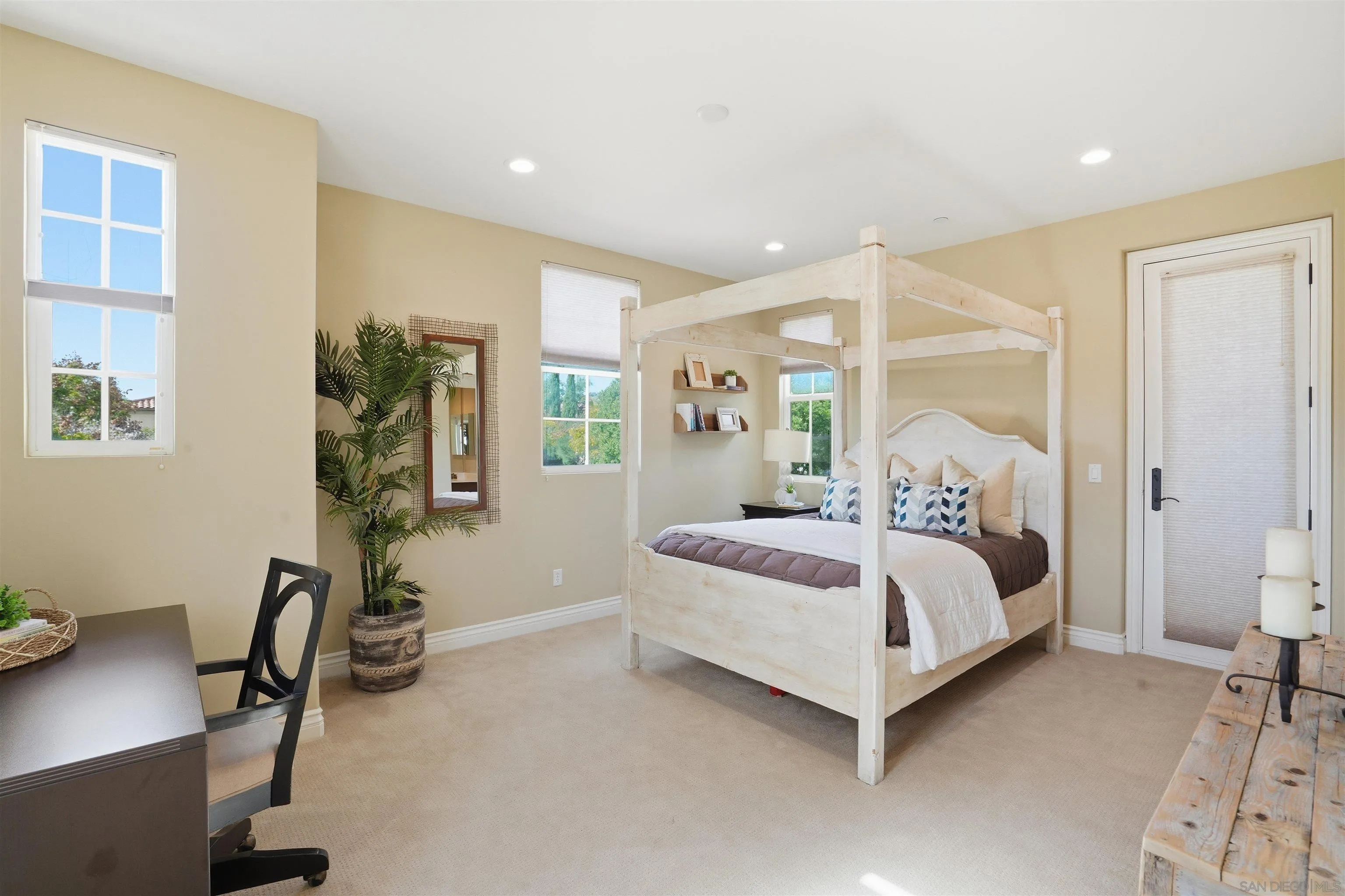 Welcome to this stunning executive-style residence in the heart of La Costa Greens. As you step through the private front courtyard surrounded by lush landscaping, you’re welcomed into a home filled with rich wood flooring and elegant designer touches. To your left, a spacious office—perfect for working from home. To your right, a beautiful formal dining area that meets the most sophisticated of needs. The first-floor guest suite offers its own private bath ideal for visitors or multi-generational living. The gourmet kitchen showcases a massive center island —perfect for meal prep, gathering, and entertaining—along with maple cabinetry, a butler’s pantry, top-tier Viking appliances, and seamless flow into the warm, inviting family room with a cozy gas fireplace. Upstairs, you’ll find four generous bedrooms, including a large primary suite with plenty of room to relax, plus a versatile loft. Outside, enjoy an expansive 12,000+ square foot backyard with mature fruit trees, no neighbors directly behind, and ample space for a pool or ADU. Located just minutes to Alga Norte Park and Bressi Ranch, top-rated schools, the community pool, La Costa Resort, and Batiquitos Lagoon—this is luxury living at its finest.