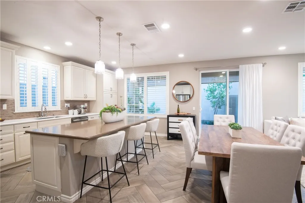 Shows like a Model. Beautifully Upgraded, Fully Detached Home in the Heart of Great Park, Irvine. This immaculate, move-in-ready residence lives and feels like a single-family home offering timeless upgrades, abundant natural light, and a flexible layout perfect for modern living. Enjoy a west-facing entry, a main-level bedroom with adjacent full bath, ideal for guests, multi-generational living, or a private office. Every detail has been thoughtfully designed, creating a space that truly shows like a model. HIGHLIGHTS AND UPDATES: *Newly purchased Samsung refrigerator and dishwasher *Newer Samsung microwave, washer and dryer *Upgraded, modernized primary shower enclosure *Epoxy garage flooring with extensive overhead storage INTERIOR FEATURES: Step inside to a light, bright, and open great room that flows seamlessly into the dining area and gourmet kitchen. Elegant herringbone-pattern flooring, soft-close cabinetry, custom shutters, designer paint finishes, and LED recessed lighting elevate the homes contemporary style. The kitchen boasts a large center island, premium Samsung appliances, and ample storage. A private wrap-around patio extends the living space outdoors, perfect for morning coffee & entertaining. UPSTAIRS BEDROOMS & RETREAT: The primary suite offers a serene atmosphere with a soft, neutral palette, elegant chandelier, and an abundance of natural light. The ensuite bath features dual vanities, a deep soaking tub, a newly installed glass shower enclosure, and a large walk-in closet. Two secondary bedrooms enjoy beautiful light and generous closet space, compl