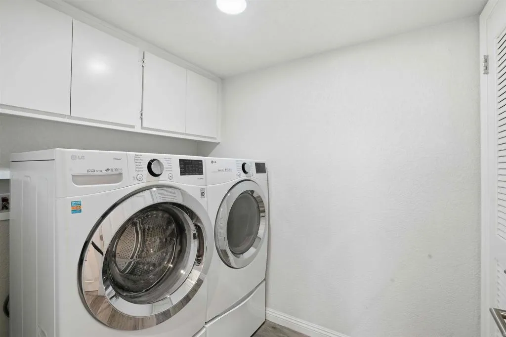 Winter Special! Need a place Month to Month?, 3 months, 6 months or maybe decide if you want to buy this lovely home for $950,000? Flexible lease terms. Immaculate fully updated interiors in lovely condo complex adjacent the Buena Vista Lagoon. The perfect balance of style, tranquility, and location in this fully remodeled coastal condo tucked quietly along the Buena Vista Lagoon, between Carlsbad and Oceanside. The first complex after the Nature Reserve Center at the lagoon as you drive up Coast Highway from Laguna Drive. Great Floor plan ideal for roommates with separate entrance and located on opposite ends of the unit. See floor plan in photo section! Downstairs unit offers Luxury Vinyl Plank flooring, recessed lighting, and plantation shutters throughout. Gourmet kitchen includes coordinating stainless steel French-style refrigerator, modern oven, dishwasher, and stylish bar seating. Bay-window dining area perfect for weekend brunch or casual entertaining. Two patios to unwind and enjoy lagoon breezes. Laundry room with high-end LG washer/dryer and abundant storage. Central air and heat for year-round comfort. Primary Suite - Your private retreat includes a large walk-in closet and a spa-style bathroom with dual sinks, a soaking tub, separate shower, and a makeup vanity. Designed for modern living all on one floor, this home offers sophisticated comfort just minutes from Carlsbad Villages vibrant restaurants, wine bars, and beach side nightlifeyet feels worlds away from the buzz.Located in an intimate 39-unit complex, enjoy a private detached garage, an extra reserved