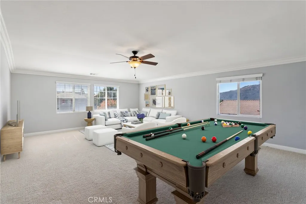 Beautiful South Temecula Home with Mountain Views Near Great Oak High School. Welcome to this stunning South Temecula home perfectly situated near Great Oak High School and Birdsall Park, offering scenic mountain views and a highly desirable location. Step inside to an inviting formal living and dining area, ideal for entertaining. The chefs kitchen features granite counters, island and full granite backsplash. Stainless steel appliances and a walk-in pantry. The kitchen opens seamlessly to a spacious family room complete with a cozy fireplace, ceiling fan, and built-in entertainment center. Upstairs, youll find a generous loftperfect for a home office, game room, or additional lounge areaalong with a convenient built-in desk. The primary suite includes a luxurious ensuite bathroom with dual vanities, a soaking tub, separate shower, and a large walk-in closet. Secondary bedrooms feature mirrored closet doors and ceiling fans for year-round comfort. Enjoy outdoor living at its best in the beautifully landscaped backyard. Entertain guests with the built-in 6-foot BBQ under the full-length alumawood patio cover, surrounded by a lush grassy area and fruit trees. Located close to Temeculas award-winning wineries, charming Old Town, top rated schools, shopping, dining and Pechanga Resort and Casino. This home truly offers the best of Southern California living!
