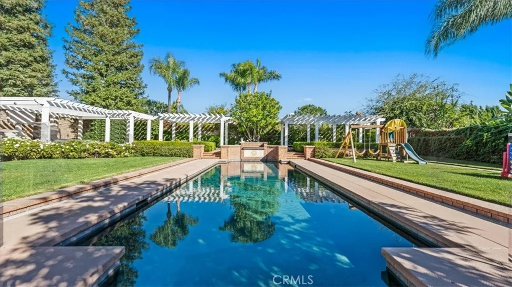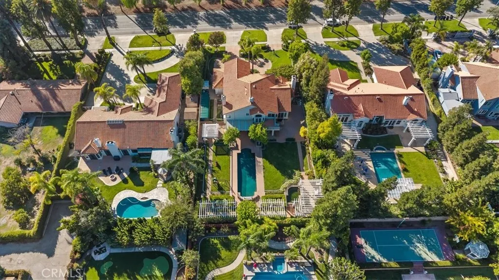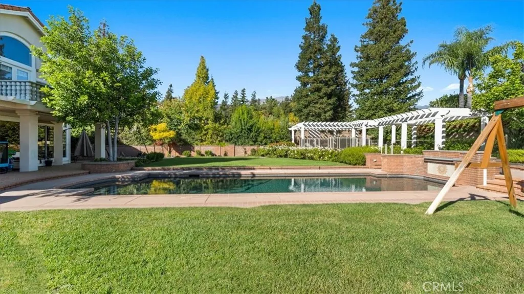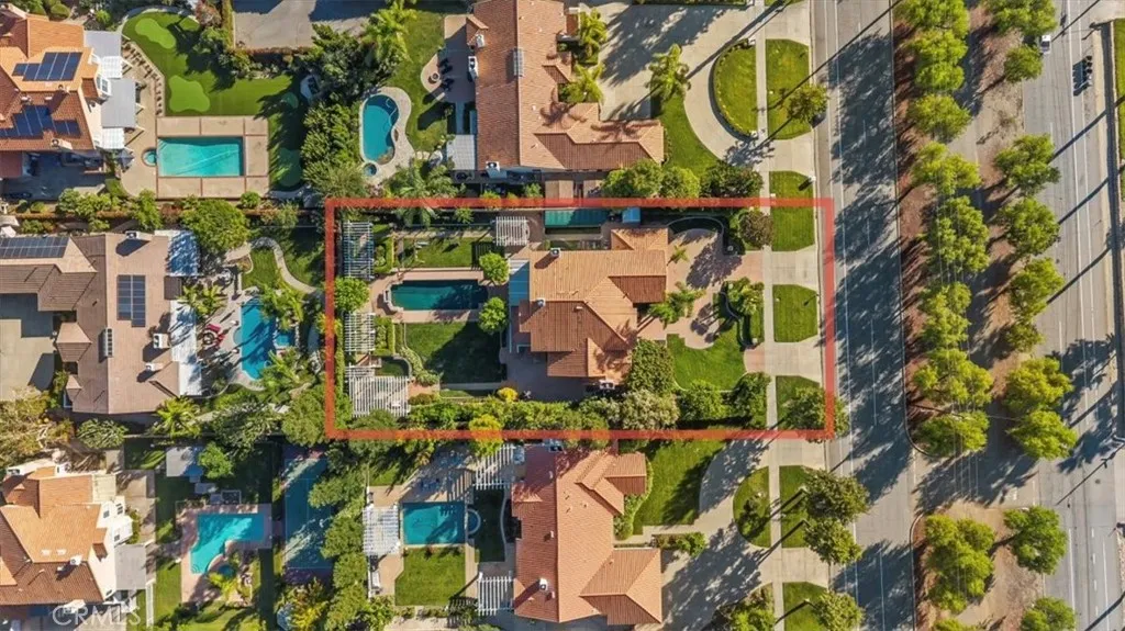 It doesn't get any better than this! This is the development's crown jewel, a statement home built by JM Peters on prestigious Euclid Avenue in North Upland. This home offers a brilliant floor plan, offering open and expansive spaces. As you approach the home, you will be impressed by how far back it sits off the street. There is a circular driveway that can accommodate four or more vehicles. The entire presentation of the front of the house exudes beauty and luxury. Enter through the double doors to find soaring ceilings and lots of windows that allow for natural light. The home is open and bright in every room. The formal living and dining rooms are perfect for special occasions. However, as in most homes, the kitchen is the heartbeat of the house. There you will find modern finishes, high-end appliances, and an open and inviting area that really creates a great room effect. The first level also includes a home office/library with custom built-ins. Additionally, there is a downstairs, second primary suite that is ideal for a nanny, granny, or guests. Upstairs, the primary suite is luxurious! It is very spacious and feels like you have found your own private retreat. It offers a blend of modern luxury and timeless calm. The elegant details and tranquil views invite you to slow down and savor the life you have created. The secondary bedrooms and baths are also lovely and spacious. The game room is perfect for a friendly game of pool, a home gym, or a teen's gathering space. When stepping outside, you will find a resort-inspired backyard. Lush and mature landscaping and eleg
