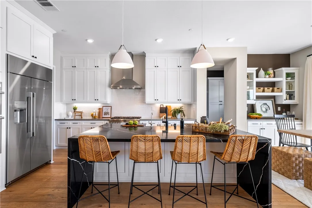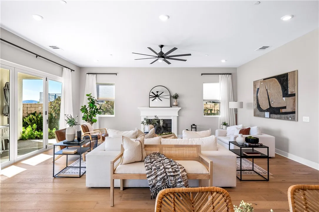 Welcome to your TURNKEY DREAM HOME, located in one of Southern Californias most highly anticipated master-planned communities. This former model home boasts premium designer upgrades and contemporary elegance throughout, representing the absolute pinnacle of what the Williams Ranch community has to offer. Perfectly positioned on a corner end lot with breathtaking mountain and city views from nearly every room, this exceptional 6-bedroom, 6-bathroom home effortlessly blends modern sophistication, versatility, and relaxed, everyday livability. This stunning property is a fully energy-independent showcase, crowned by a sleek, OWNED Tesla Solar Roof tile system (1 of only 6 homes in the development) paired with Powerwall backup batteriesdelivering near-zero energy bills PLUS uninterrupted power during outages, offering the ultimate peace of mind in sustainable luxury. The open-concept living areas flow effortlessly to your very own private resort-style backyard featuring a covered California room with ceiling fans and mood lighting, sparkling pool, dedicated pickleball/sport court, and a cantilevered steel pergola providing plenty of shade. Enjoy rich hardwood flooring, tri-fold glass doors, designer lighting, and built-in closet organizers. Every bathroom is upgraded with Moen bathroom fixtures and hand-laid tiles. Retreat to the luxurious primary suite with a private balcony and an oversized walk-in closet. The spa-like ensuite bath features dual vanities, an oversized walk-in shower, soaking tub, and artisan stone detailing. At the heart of the home, the chefs kitchen dazzle