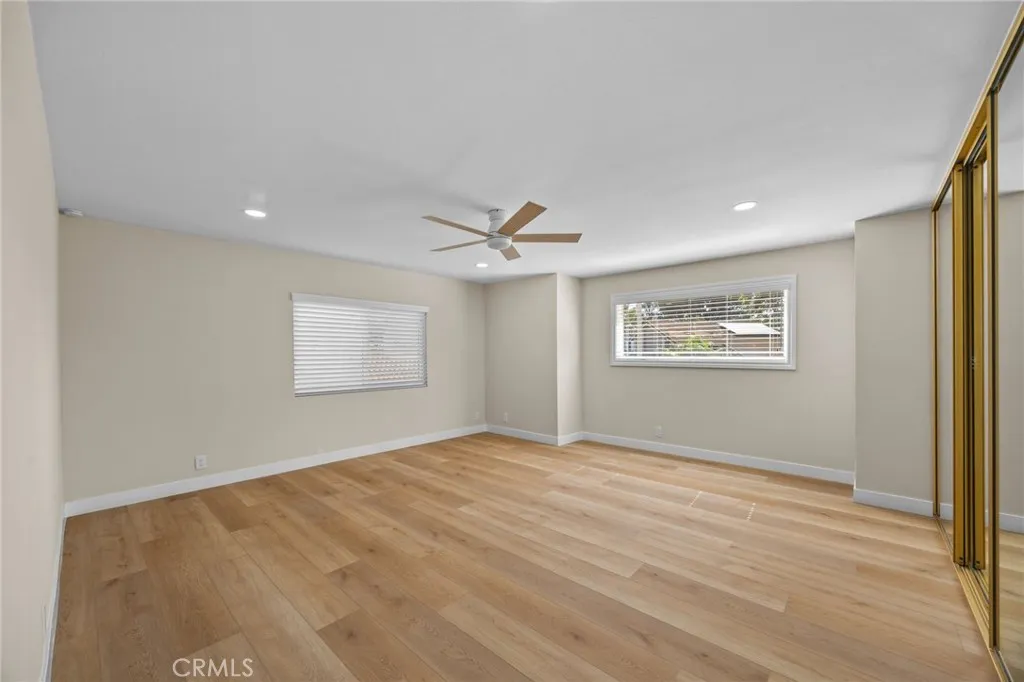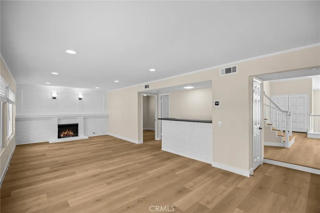 Welcome to this beautifully refreshed home located at the end of a quiet cul-de-sac just steps from the scenic Venta Spur Trail and Silkwood Park. Enjoy the convenience of walking to Brywood Elementary, Sierra Vista Middle School, and Chinese Immersion Academy (ICIA) a highly desirable academic corridor in Irvine. Upgrades include new luxury vinyl plank flooring, fresh NEW interior paint, NEW recessed LED lighting, NEW double-paned windows & slider, ALL NEW window coverings, NEW toilets, NEW shower fixtures, & New 200 AMP Electrical Panel. The bright living room welcomes you with soaring vaulted ceilings. Open kitchen offers abundant storage and counter space and overlooks the warm, inviting family room with a fireplace & a wet bar. A main floor BR with an adjacent half bath provides flexibility for guests, a home office, or multi-generational living. The spacious open kitchen overlooks the family room, creating a seamless flow for everyday living and entertaining. It features freshly painted white cabinetry, recessed lighting, granite countertops, and stainless steel appliances, including a new range hood vented to the exterior. A new kitchen faucet and Reverse Osmosis (water purification) add convenience and quality. Large windows bring in natural light and frame views of the backyard, making the kitchen both functional and welcoming. Upstairs, the primary suite is exceptionally spacious and feels like a true retreat. It comfortably accommodates a king-size bed & features its own fireplace, NEW recessed lighting, NEW ceiling fan, and a walk-in closet. The secondary BR is