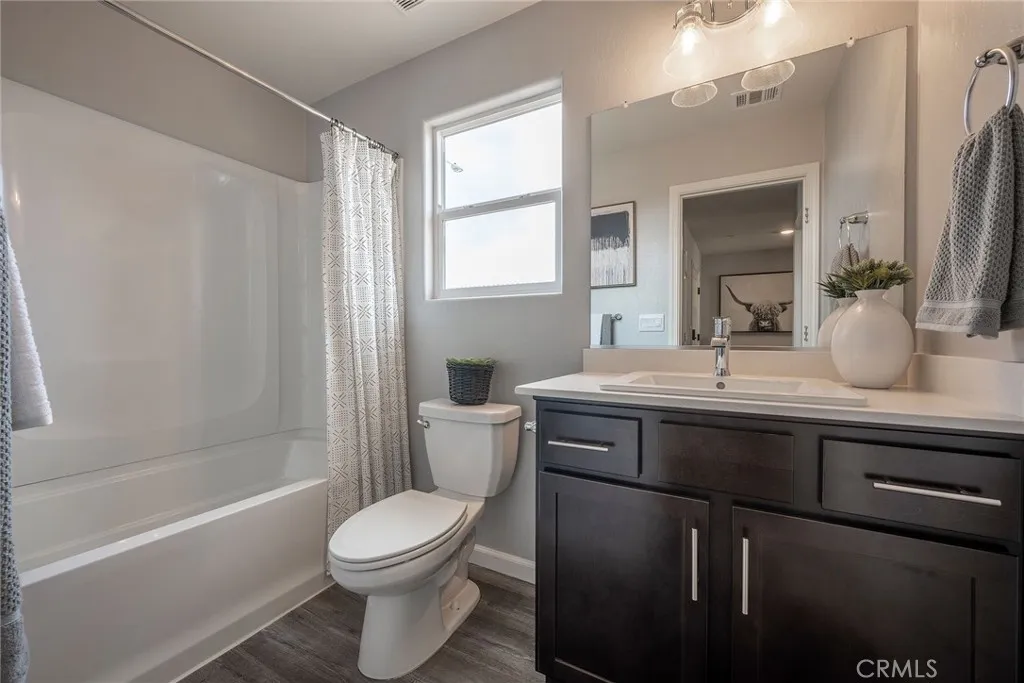 This single-story, four bedroom, two bathroom home is enhanced with 9 ceilings and offers approximately 1,509 square feet of living space with an open-style living room and adjoining kitchen and dining area that are perfect for entertaining. The kitchen features shaker-style cabinetry, quartz countertops with backsplash, a walk-in pantry, a center island with pendant lighting and snack bar, and Whirlpool stainless-steel appliances including a range, microwave and dishwasher. Black finishes are standard throughout the home. The main suite has an adjoining bathroom with dual vanity sinks and a large walk-in closet. A solar system is included in the purchase price of this home!