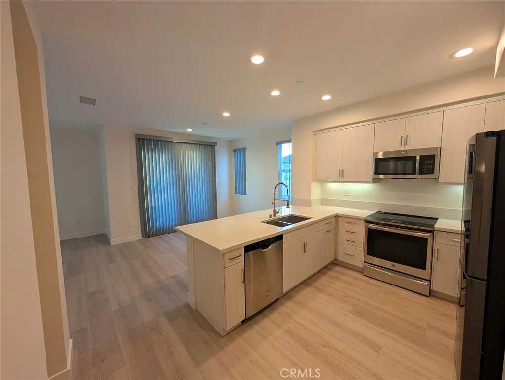 Modern and stylish, this tri-level El Monte townhomebuilt in 2018 and located in the heart of the San Gabriel Valleyoffers a perfect blend of comfort, efficiency, and convenience for renters seeking a sophisticated lifestyle. The first level features a welcoming entry and direct access to a finished two-car garage with extra storage, a trash-bin cutout, and a NEMA 14-50 outlet for fast EV charging. On the second level, an open-concept living space showcases a beautiful kitchen with quartz countertops, a full suite of stainless-steel appliances, and a large counter with a breakfast bar that flows seamlessly into the dining area and living room; a covered balcony off the dining space provides a relaxing spot to unwind at sunset, and a half bath and coat closet complete this level. A final set of stairs leads to the third floor, where a generous laundry closet with a stackable washer and dryer accompanies two well-appointed bedrooms, including a primary suite with a walk-in closet, dual sinks, a private toilet room, and a large tiled shower with a built-in bench. The secondary bedroom sits across from a full hallway bath with a tub and shower. Additional features include dual-zone comfort with Nest thermostats on levels two and three, as well as paid-off solar panels that help reduce electricity costs. The community also offers inviting shared amenities, including a BBQ area, a dog park, and an on-site play gym for young children. Minutes from schools, shopping, dining, and with convenient access to downtown LA, this exceptional townhome delivers modern living in one of El Mon