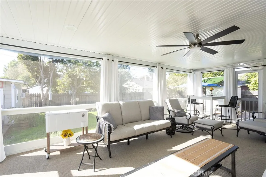 Welcome to 119 N. Annin Avenue, a charming and fully renovated single-story home located in one of Fullertons most established and centrally located neighborhoods. This beautifully upgraded home offers 3 bedrooms, 2 full bathrooms, and approximately 1,340 sq ft of thoughtfully designed living space. Nearly every detail has been updated, including new flooring throughout, custom light fixtures, recessed lighting, a new sliding glass door, an expansive sunroom, Tankless Water heater and two Timbertech decks, one in the front yard and one off the primary bedroom. Step inside and immediately appreciate the attention to detail and abundant natural light that fills the open floor plan. The stunning kitchen features new white cabinetry, quartz countertops, and stainless steel appliances. Adjacent to the kitchen is a spacious dining area complete with a cozy white brick fireplace and peaceful views of the backyard. The primary suite serves as a relaxing retreat, offering an ensuite bathroom with a travertine stone shower with dual shower heads, and sliding door access to a private Timbertech deck perfect for enjoying warm summer evenings. Down the hallway are two additional bedrooms and a beautifully updated full bathroom with dual sinks. The expansive sunroom patio with an added 384 sq ft is ideal for outdoor dining and entertaining, with open views of the backyard. The yard also features a she-shed/man cave, fruit-bearing lemon and orange trees, lush landscaping, and a vegetable garden for your personal enjoyment. Additional highlights include an elongated driveway, and an attach
