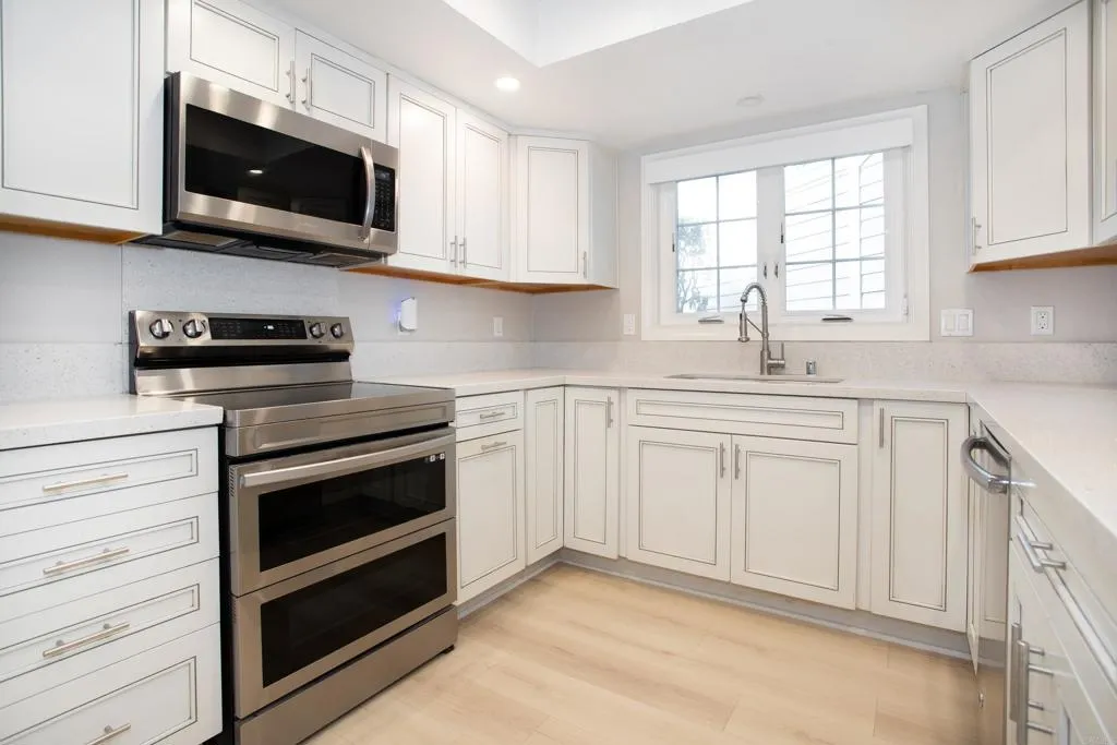 This private condominium features two large bedrooms and two baths. Recently painted and professionally deep cleaned. Newly installed wide neutral toned luxury vinyl plank flooring. Almost new kitchen appliances features a galley kitchen with considerable storage with soft closing drawers. Upgraded vinyl windows and sliding doors. A pool and spa are on site. Nestled between Carlsbad and South Oceanside you can walk or bike to area beaches and enjoy the quaint intimacy of both towns taking advantage of great restaurants, numerous yearly activities; including two street fairs and world class 5K and marathon races, and professional services nearby. This geographic location provide easy commuter access in any direction or take advantage of nearby train and Coaster stations.