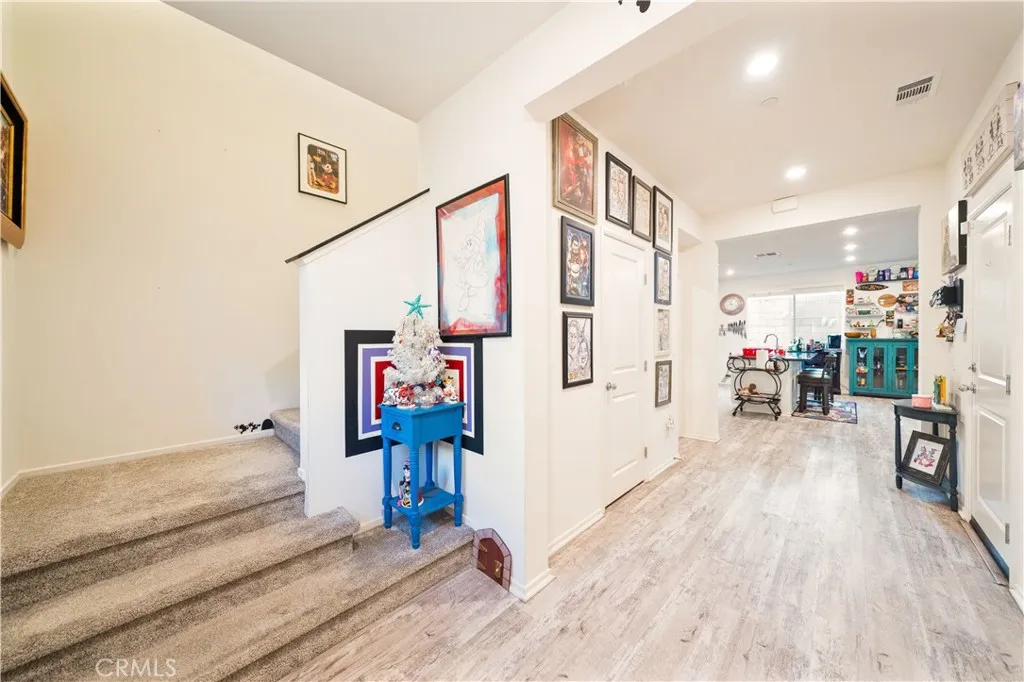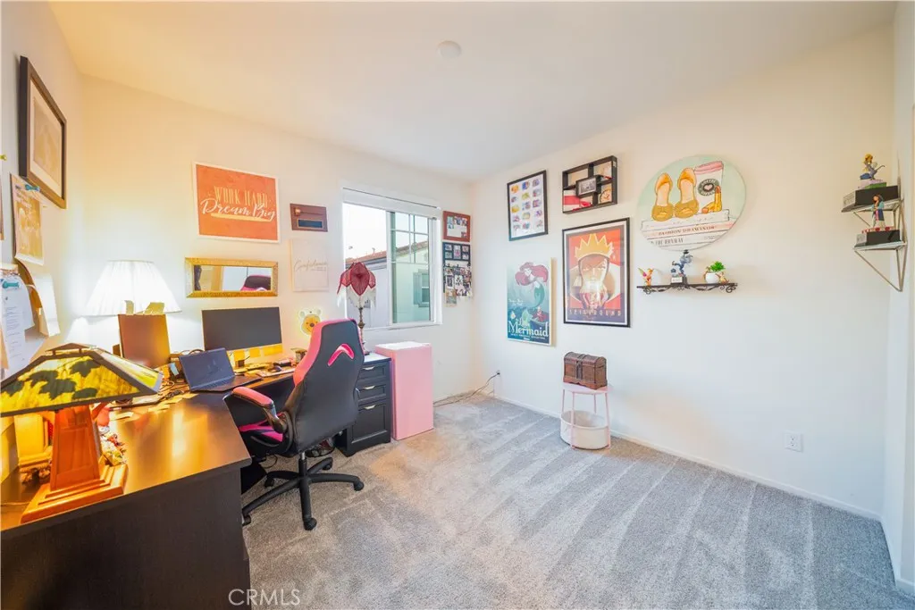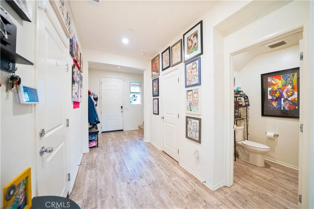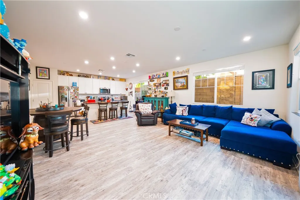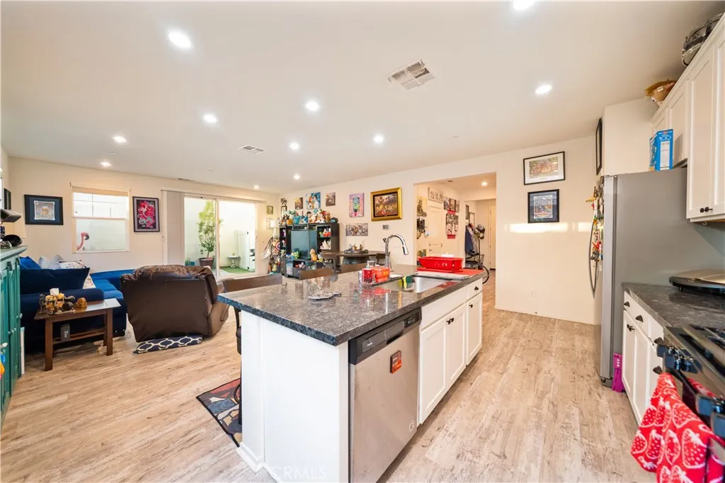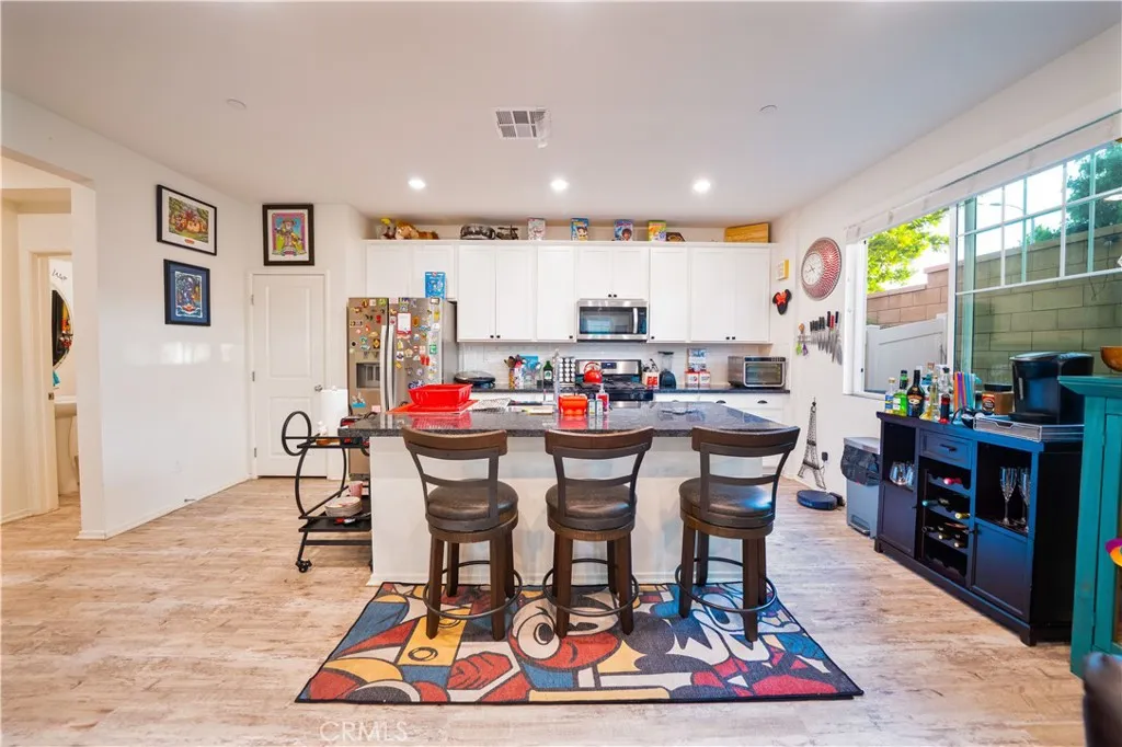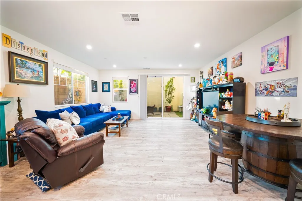 Step into your own Disney wonderland where modern comfort meets effortless living in this beautifully designed 2021 built home, tucked inside a tight knit community with LOW HOA & NO MELL ROOS. From the moment you walk in, the home feels bright, welcoming, and thoughtfully laid out. A convenient guest powder room sits near the entry, keeping your private living spaces upstairs undisturbed. The main level opens into a seamless, airy living and dining area that is perfect for everything from cozy nights in to hosting friends and family. The kitchen is a true showpiece, featuring sleek wall to wall cabinetry, black granite countertops, and stainless steel appliances that blend style with everyday functionality. Just off the living room, enjoy a partial wraparound patio, ideal for pets, a morning coffee, or winding down in your own low maintenance outdoor space. Upstairs, you will find three generously sized bedrooms and two full bathrooms. The spacious primary suite offers a walk in closet and dual sink vanity, making busy mornings smooth and stress free. The HOA offers resort style amenities that truly elevate everyday living, including a sparkling pool and spa, bathrooms and showers by the pool, a fun slide for kids on the grass, comfortable lounge chairs and cabanas, and BBQ areas perfect for weekend gatherings and entertaining. The HOA also takes care of gardener maintenance, including the front area of the home, handling the plants and overall upkeep so you can enjoy a clean and well maintained exterior without the extra work. Pool maintenance is fully handled as well, so