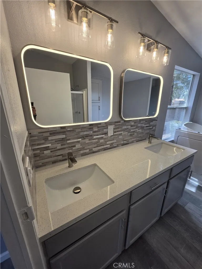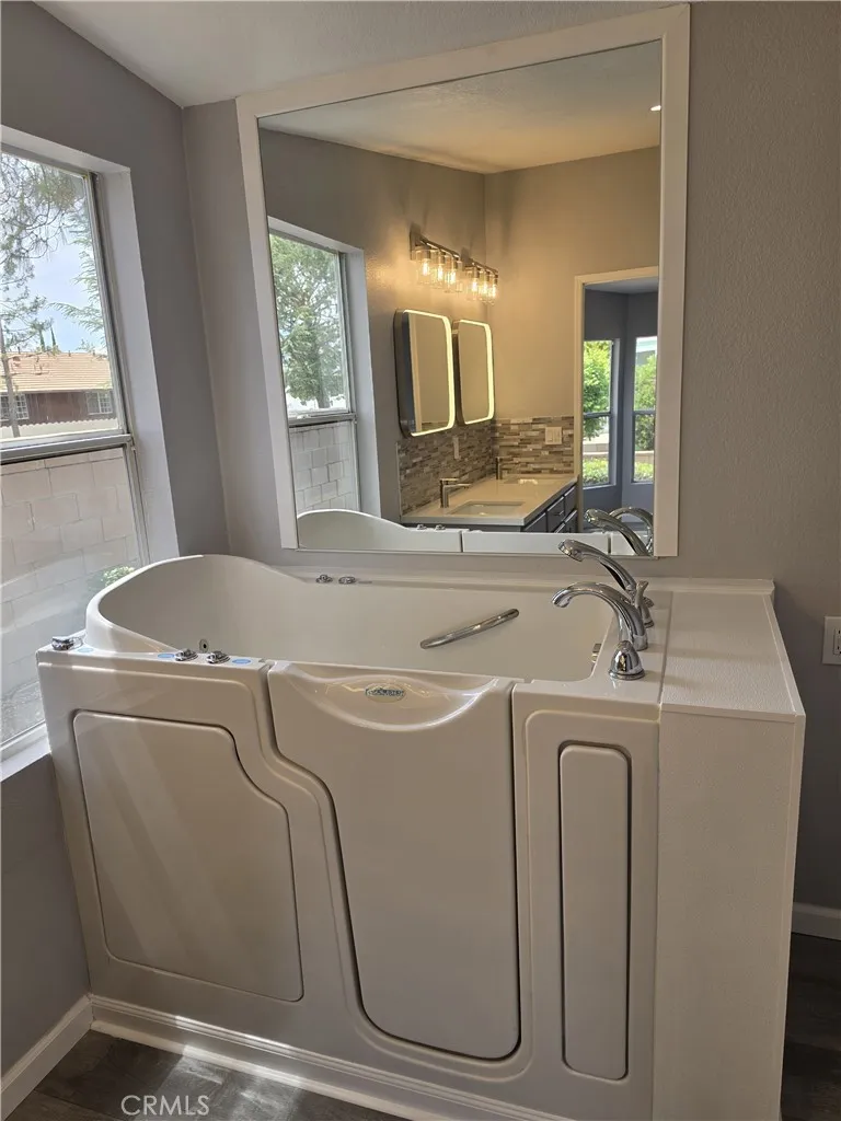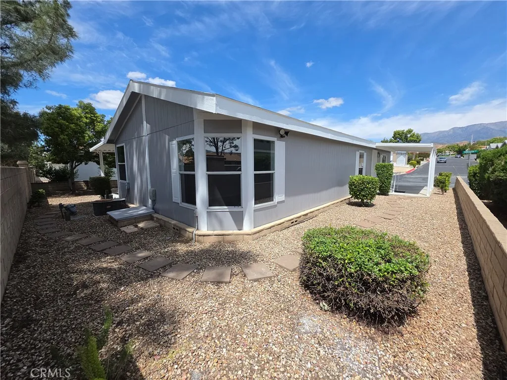 Stunningly remodeled 2005 Fleetwood double-wide located in the desirable Mountain Springs 55+ Community in Banning. This spacious 3 bedroom, 2 bathroom home offers approximately 1,248 sq. ft. of modernized living space with an attached 2-car garage, private side yard, and covered patio/carport area. Step inside to an open and airy floor plan featuring vaulted ceilings, abundant natural light, new luxury plank flooring, fresh interior/exterior paint, updated lighting, and designer finishes throughout. The fully renovated kitchen showcases quartz countertops, custom cabinetry, tile backsplash, stainless steel appliances, and recessed lighting. The generous primary suite includes a spa-like ensuite bathroom with dual sinks, illuminated mirrors, walk-in shower, and a relaxing soaking tub. Secondary bedrooms are well-sized and versatile for guests, office, or hobbies. Exterior improvements include fresh paint, low-maintenance desert landscaping, private stepway, and attractive curb appeal. Located in a beautifully maintained community with resort-style amenities and convenient access to shopping, dining, freeway access, and local services. ready and beautifully upgradedthis is one of the finest homes currently available in Mountain Springs.