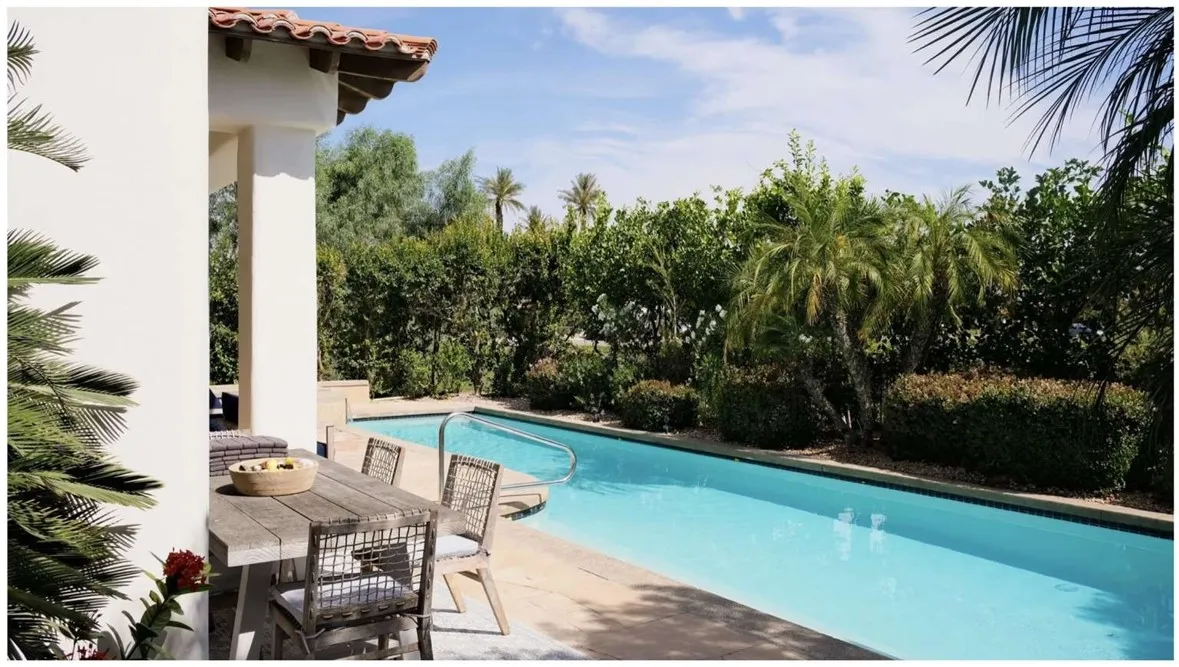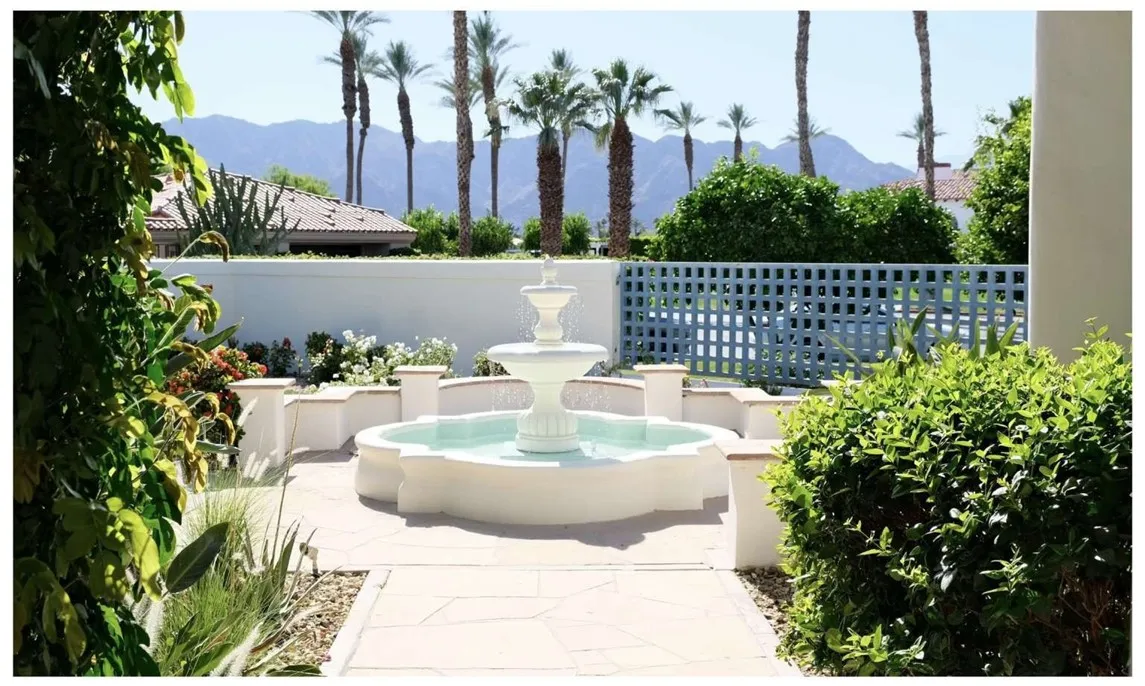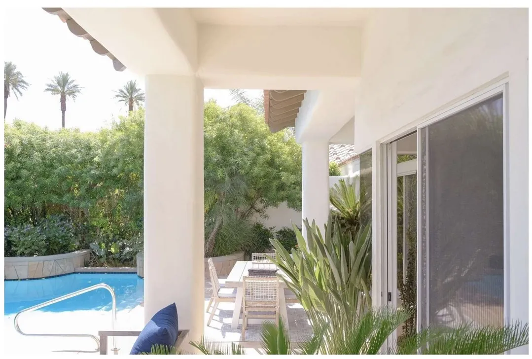 Situated at the end of a cul-de-sac in the guard-gated community of The Citrus, this beautifully remodeled desert condo offers exceptional privacy with only one neighboring property. A large private courtyard framed by mature landscaping captures expansive greenbelt and mountain views- situated just a short walk from the clubhouse. The fully furnished home features a thoughtfully curated soft neutral palette with a warm and organic feel. Flagstone flooring, white oak accents, plush wool carpeting, plantation shutters, tongue and groove wood ceiling, integrated home audio system, walk in closets, 12-foot ceilings and expansive glass doors flood the space with natural light. Designer furnishings include Restoration Hardware, Jenni Kayne, Ralph Lauren, Serena & Lily, Bernhardt and Palecek. Originally the model home for the Citrus community, this property reflects premium finishes and attention to detail. The fully equipped chefs kitchen is framed by a large picture window overlooking a lush courtyard, beautiful fountain and mountain views. Designed for everyday living and effortless entertaining it features commercial-grade stainless steel appliances, under-sink reverse osmosis water filtration system, porcelain countertops and a fully remodeled wet bar. The private outdoor living experience is equally elevated. A 50-foot saltwater pool complete with spa, heater and chiller is fully automated via tablet control for the desired water temperature and lighting. Surrounded by beautiful landscaping, the space includes one of the largest courtyards in the Citrus with a putting green