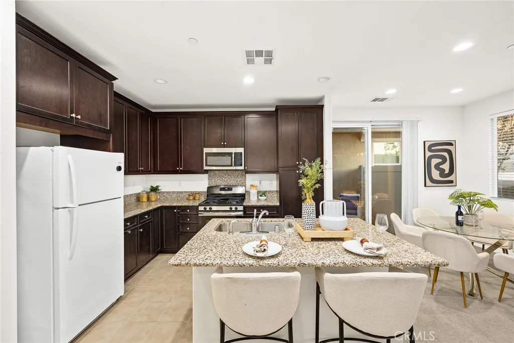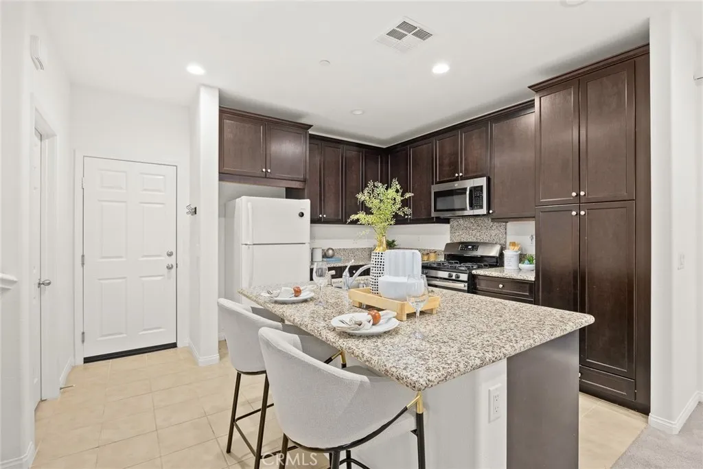 Newly built detached 2-story townhouse nestled within the serene, gated community of The Grove in North Pomona. This thoughtfully designed home features 3 bedrooms and 2.5 bathrooms with a bright, open-concept floor plan ideal for modern living. The inviting living room flows seamlessly into the dining area, while sliding glass doors open to a large enclosed patio, creating an extended outdoor living space perfect for relaxing or entertaining. The open kitchen is appointed with granite countertops, a spacious center island ideal for casual dining and gatherings, and abundant cabinet storage. Upstairs, the spacious primary suite offers a large walk-in closet and a private bathroom with dual sinks and elegant quartz countertops. Two additional well-sized bedrooms share a full hallway bathroom. A convenient upstairs laundry room adds everyday comfort and functionality. Additional highlights include dual-pane windows and a tankless water heater for enhanced energy efficiency and eco-friendly living. The attached two-car garage provides direct access to the home for added convenience. Residents of The Grove enjoy community amenities, including a BBQ picnic area and playground. Ideally located just minutes from the Claremont Colleges, Claremont Village, and Old Town La Verne, with easy access to the Metrolink station as well as the 210 and 10 freeways.