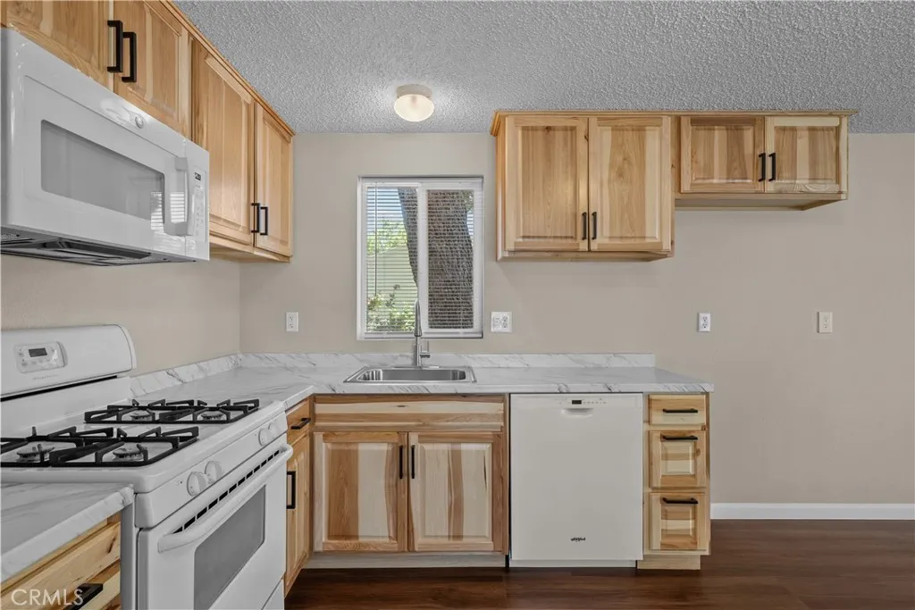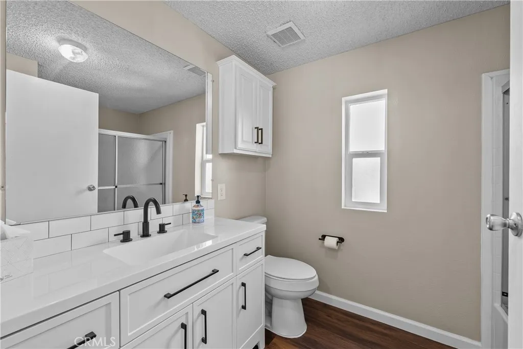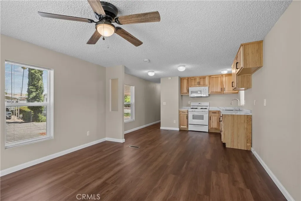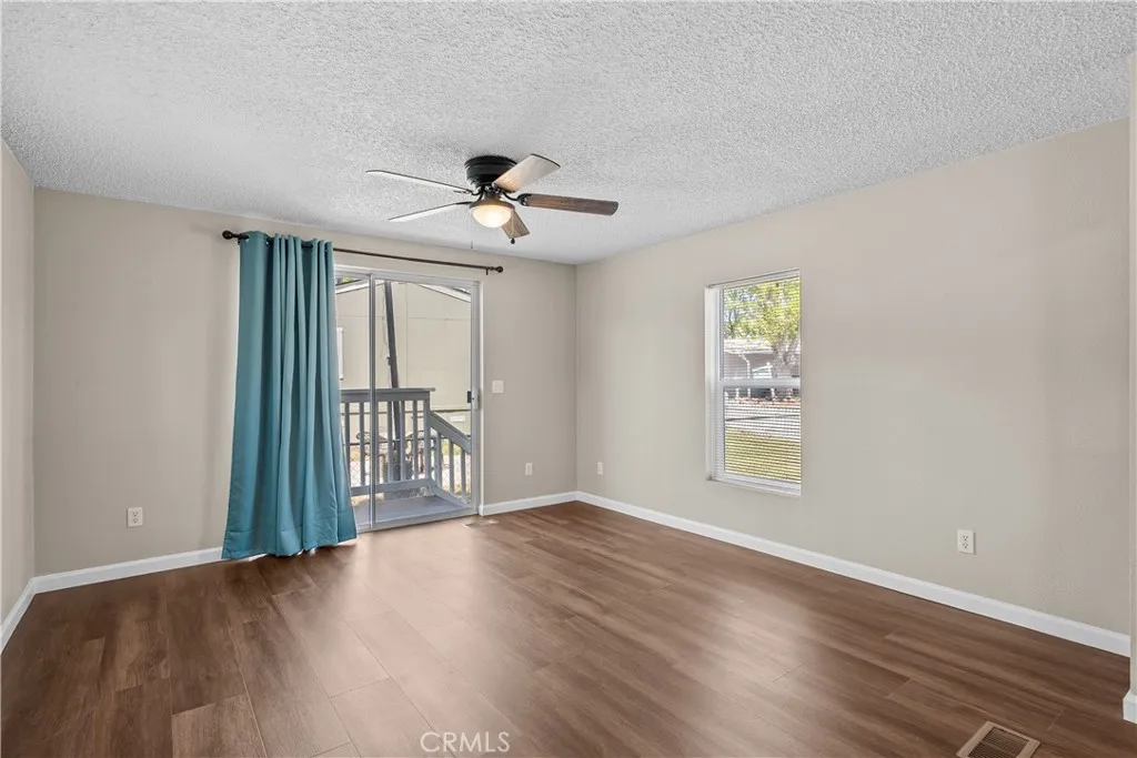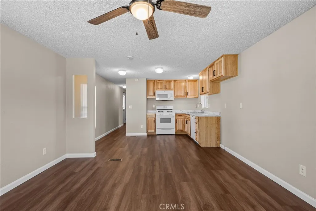 Welcome to this charming and well-kept 2 bedroom, 2 bathroom manufactured home located in the desirable Lily of the Valley community. Thoughtfully designed, this home makes great use of its space with a bright and comfortable layout, updated flooring, and fresh interior touches that give it a clean, modern feel throughout it truly feels like a brand new home. Enjoy year-round comfort with central AC and heating, along with new dual pane windows that enhance energy efficiency and natural light. The kitchen and laundry area feature beautiful wood cabinetry, while the bathroom has been tastefully updated with a white vanity, and tile backsplash. Situated on a desirable corner lot, the property offers a good-sized yard. The driveway features rare side-by-side parking, a hard-to-find feature in manufactured home communities. The exterior also includes a covered patio, landscaped front area, and a storage shed. The community offers great amenities including a playground and a conference room. A great opportunity for a buyer looking for an affordable home in a well-maintained community with convenient access to local shopping, dining, and freeway access.